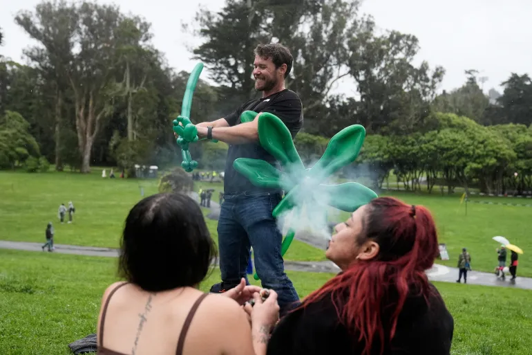 4月20日にロンドンのハイドパークで開催された毎年恒例の「420」集会で、大きすぎる大麻のマスコットの着ぐるみを着た男が警察に拘束された。警察官は、無許可で行われたこの集会に参加していた人々を取り締まった。 イベントの映