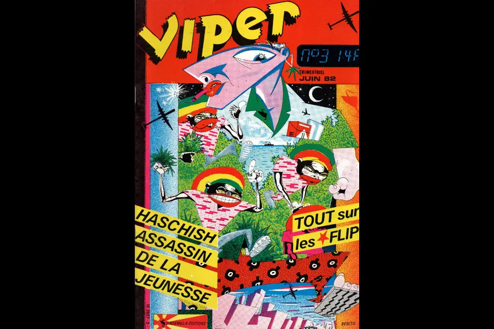 マリファナ喫煙者にちなんで名付けられたViper誌には、大麻、ドラッグ、そして音楽といったテーマに関する漫画や記事が掲載されていました。一流の漫画家や作家の作品がViperに掲載されました。パンクとヒッピーを結びつけた、オルタナティブで挑発的なこの雑誌は、時代を先取りしていました。ViperはSinsemilla Publishingによって発行されていました。