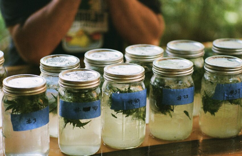 次に、瓶を10分間放置し、底にどれだけのハッシュが溜まっているかを確認します。確認のため、全員で瓶を太陽の光にかざします。