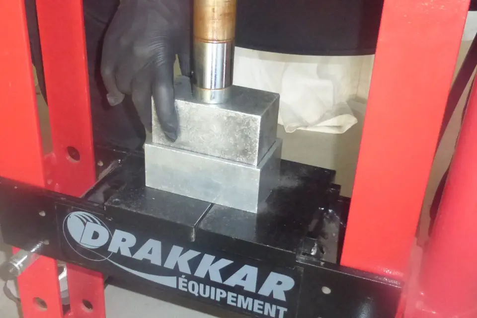 最後に、袋に入ったハッシュは特殊な型に入れられ、10トンのプレス機で圧縮されます。これは100グラムの塊です。ハッシュは真空パックされ、冷蔵保存された後、店舗に送られます。