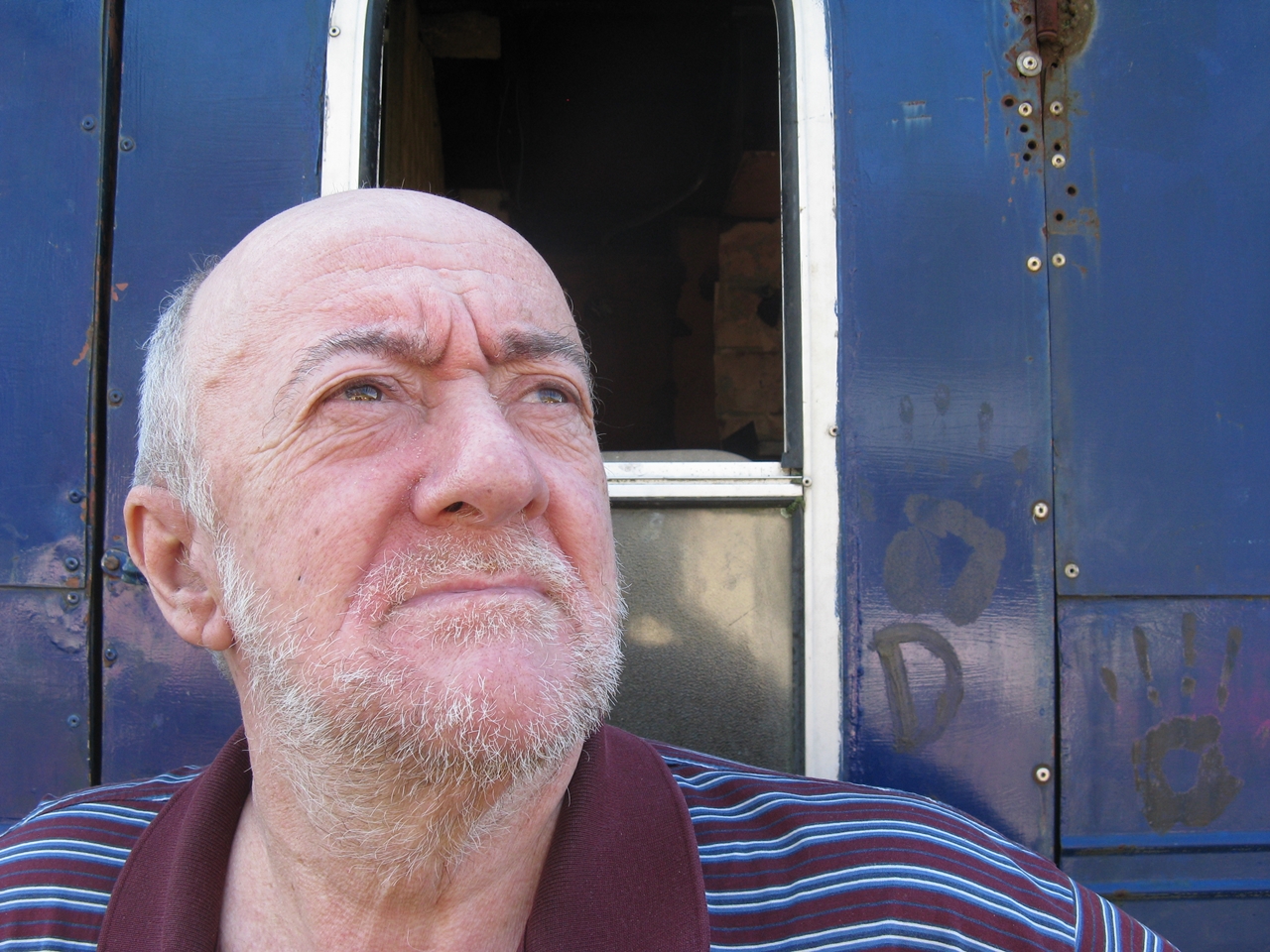 シムズは私たちが到着するのを見守り、飲み物を一口飲んで椅子の上で身じろぎする。彼の目は、苦しみの極限に達してもなお人生に驚嘆することのできる、賢く注意深い子供の目だ。